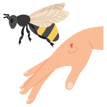 A honey bee sting occurs when a honey bee injects venom into the skin through its stinger, causing sharp pain, redness, and swelling at the sting site.
